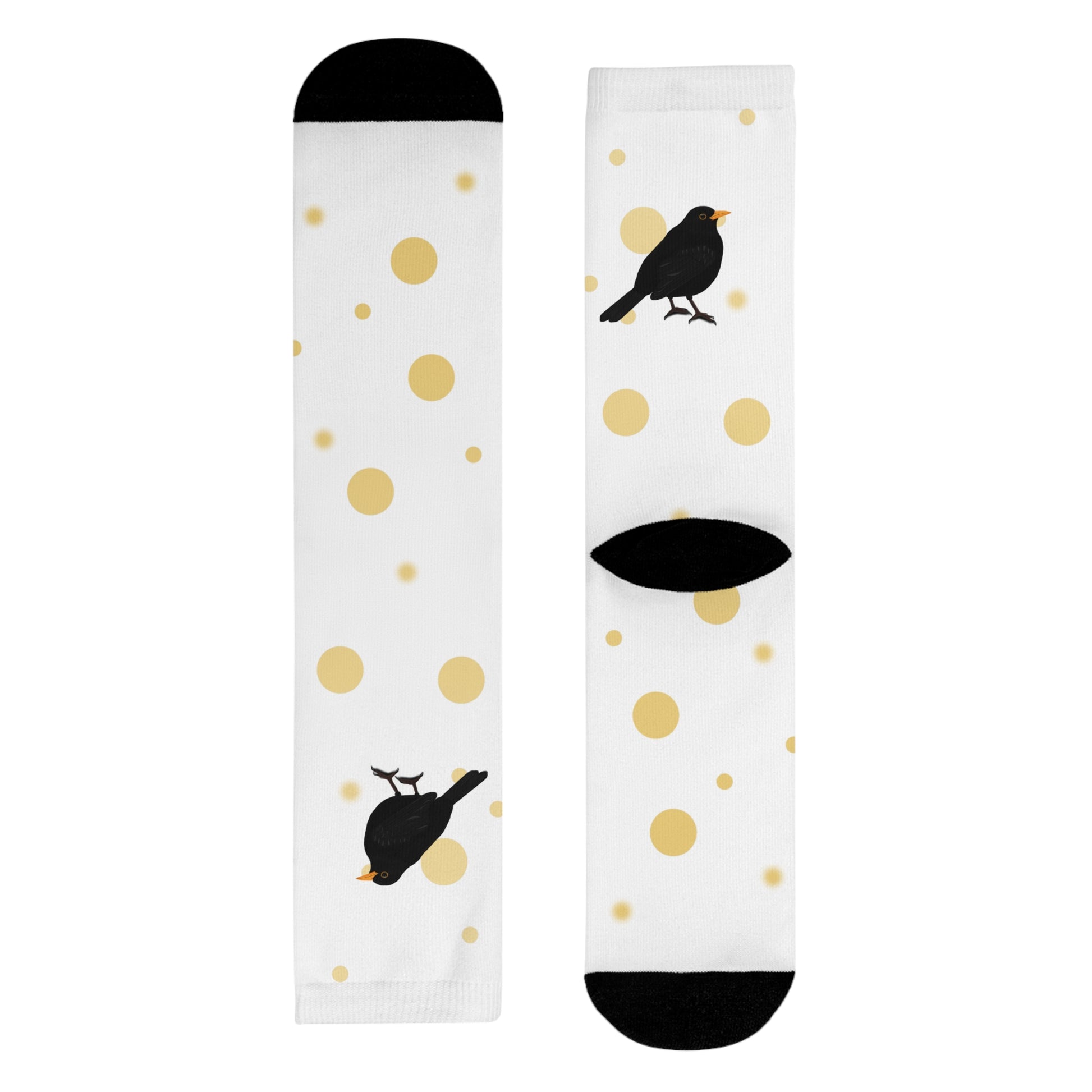 Amsel Vogel Socken mit Goldenen Punkten für Vogelfreunde & Vogelbeobachter Weiß