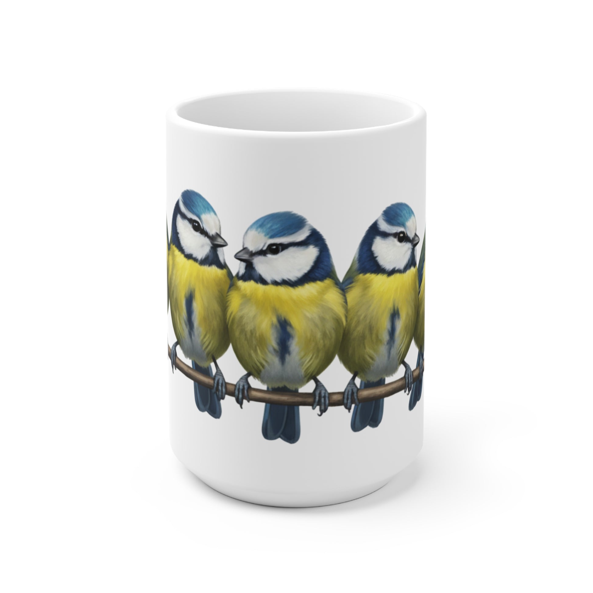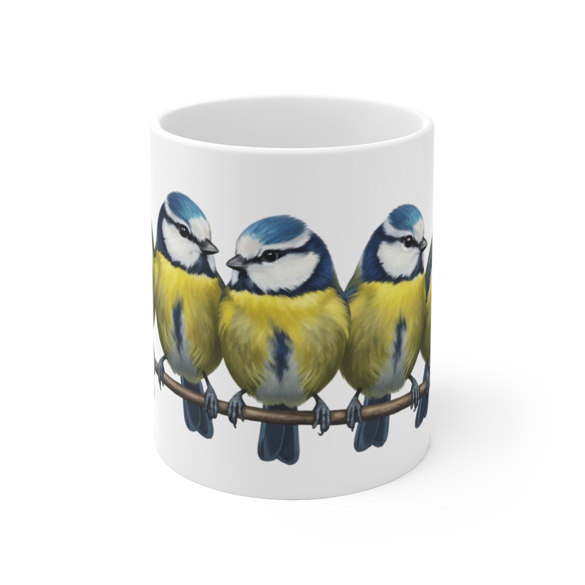 Unsere Blaumeisen auf einem Ast Vogelmotiv Tasse ist perfekt für Tee und heiße Schokolade. Die klassische Keramik Tasse ist in den Größen 11 oz. (0,33l) und 15 oz. (0,44l) erhältlich und eignet sich hervorragend als Geschenk für alle Vogelfreunde, Vogelbeobachter und Tierfreunde.
