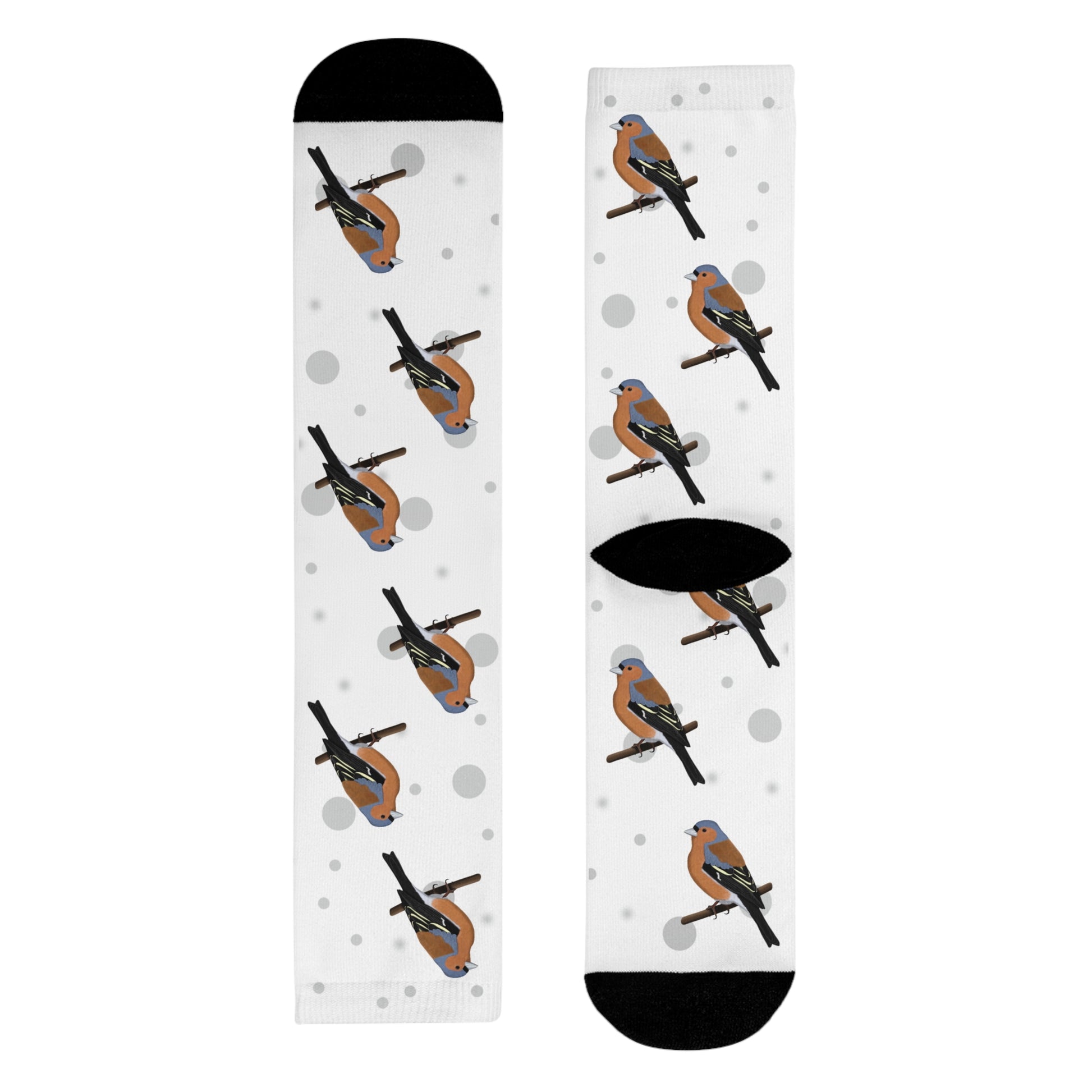 Buchfink Socken Vogelsocken Weiß mit Grauen Punkten