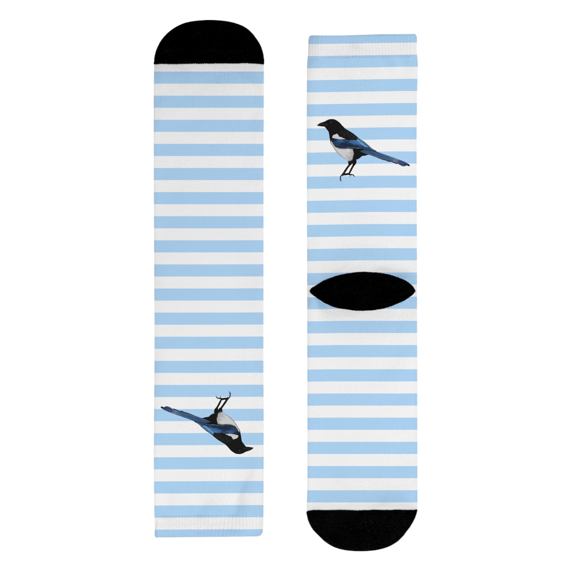 Elster Vogel Socken mit Blau Weißen Streifen für Vogelfreunde & Vogelbeobachter