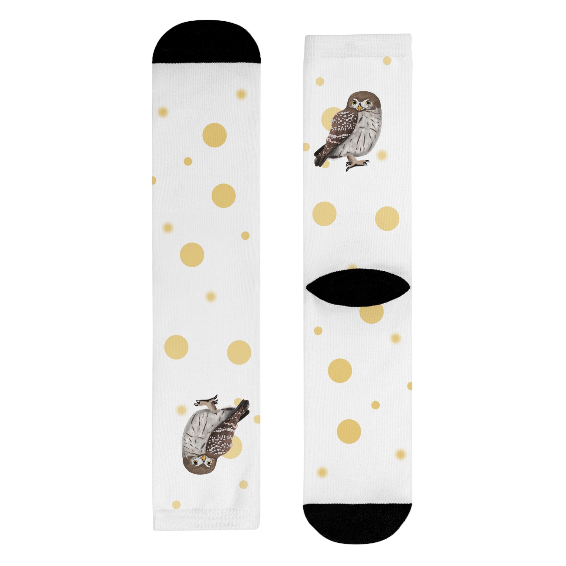 Eule Vogel Socken mit Goldenen Punkten für Vogelfreunde & Vogelbeobachter Weiß
