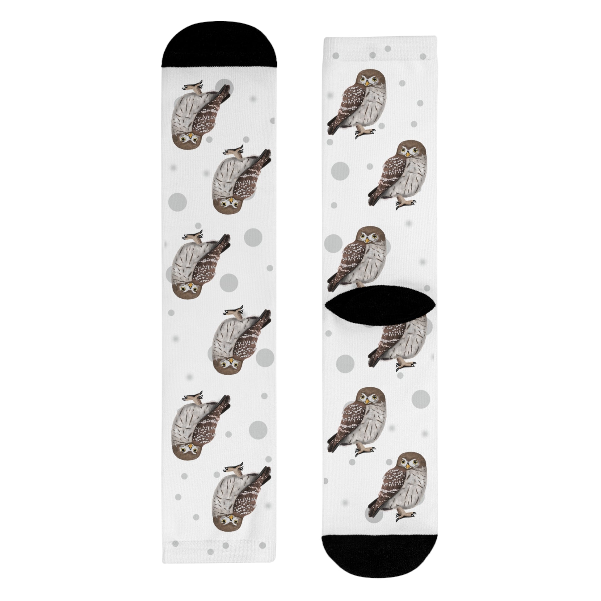 Eulen Socken Vogelsocken Weiß mit Grauen Punkten