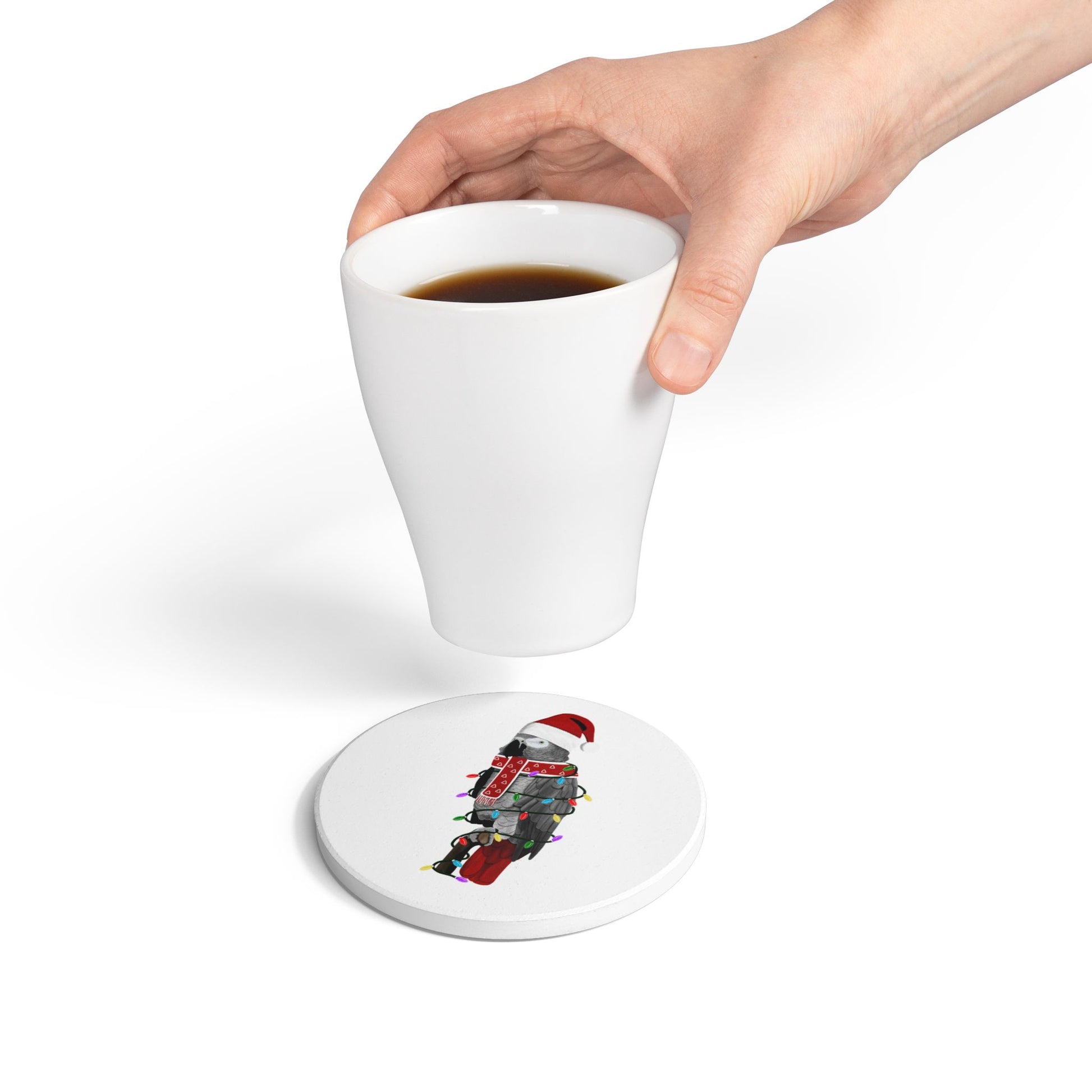 Dein neuer Lieblings-Untersetzer: Graupapagei als Weihnachtsmann Vogel-Untersetzer aus Keramik