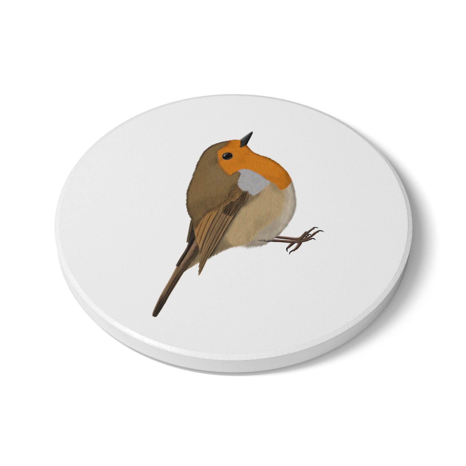 Rotkehlchen Keramik-Untersetzer Vogelmotiv Weiß