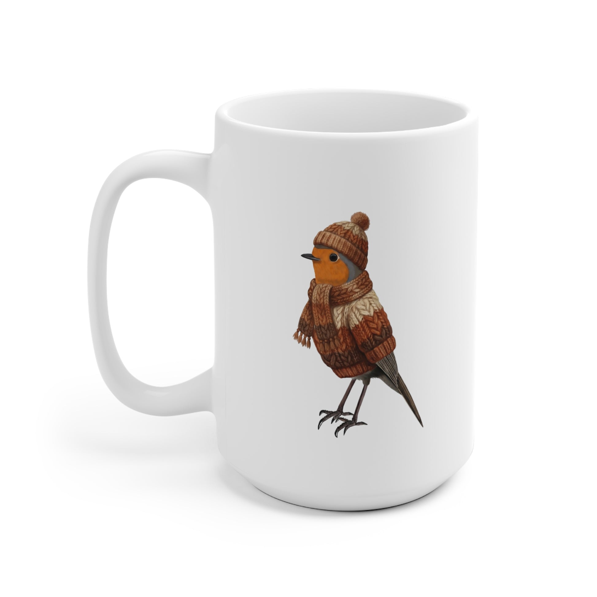 Rotkehlchen mit Strickpullover Weihnachtliche Tasse mit Vogelmotiv – Ideal für Kakao & Kaffee