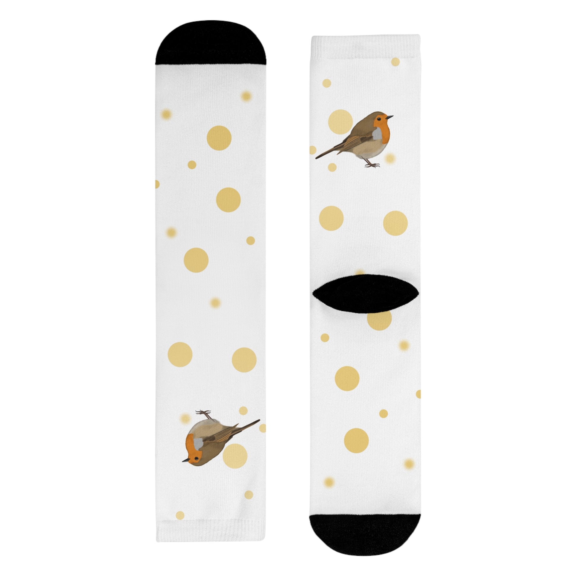 Rotkehlchen Vogel Socken mit Goldenen Punkten für Vogelfreunde & Vogelbeobachter Weiß