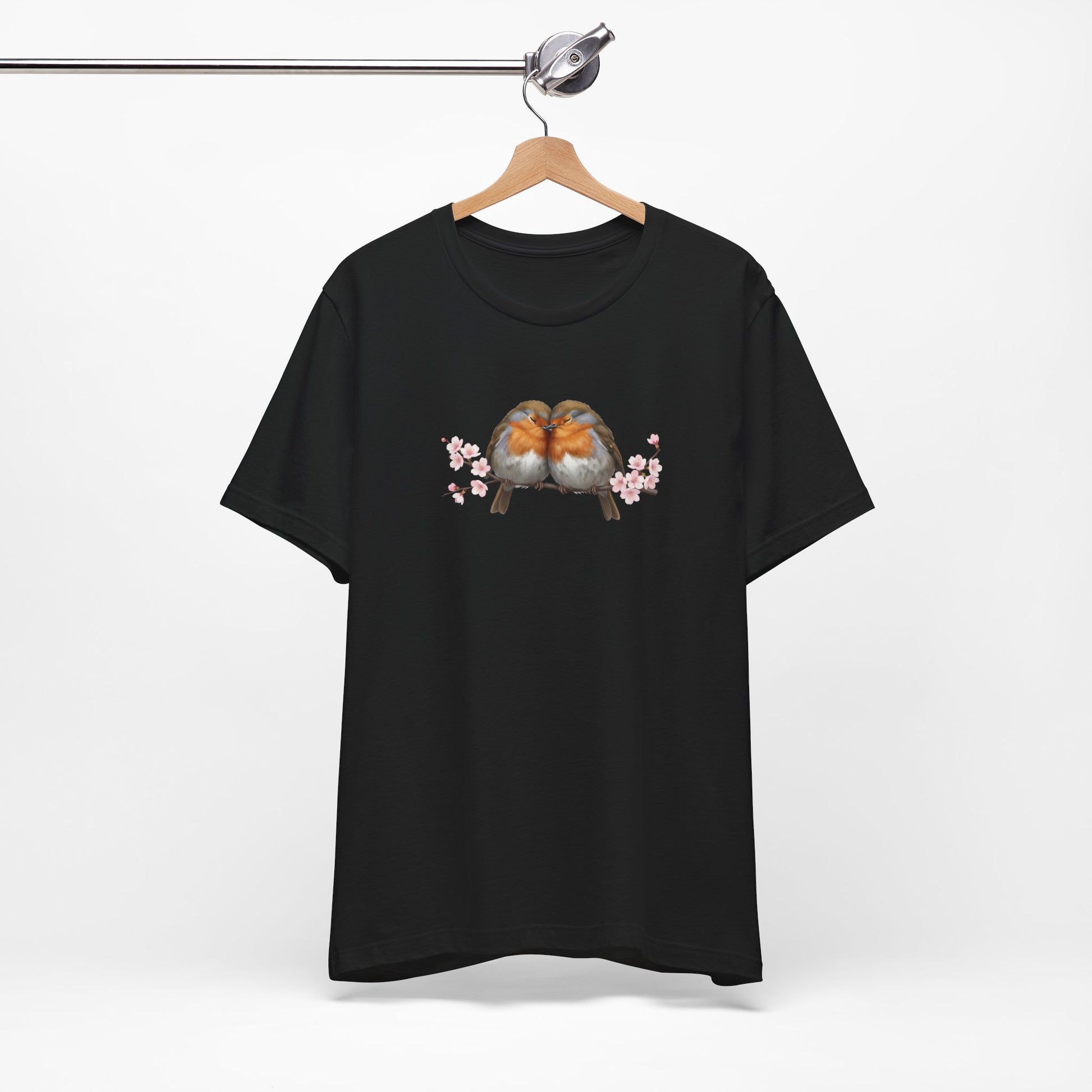 Rotkehlchen Pärchen in Kirschblüten T-Shirt - Romantisches Vogel Geschenk