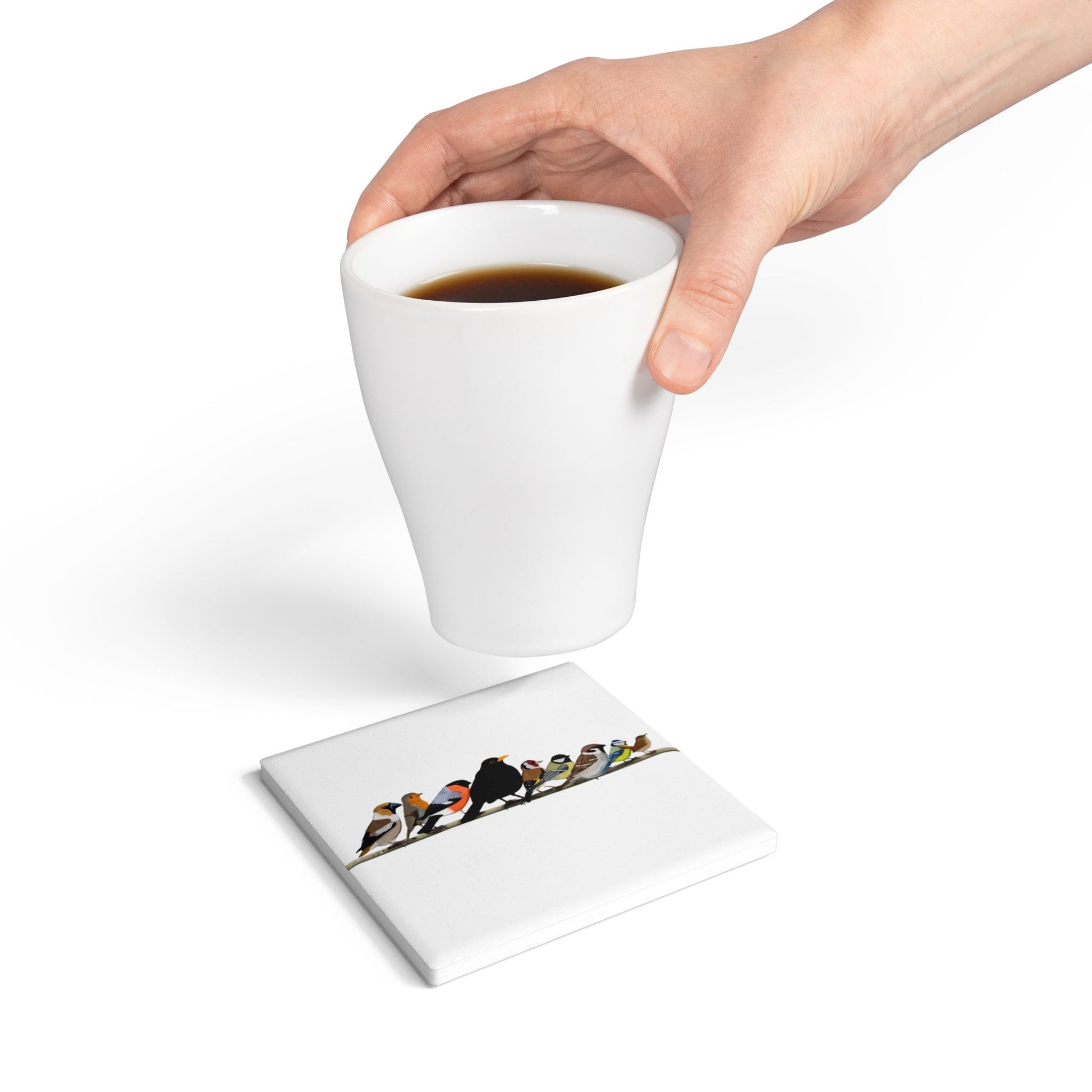 Mach’s dir gemütlich: Deine neuen Vögel auf einem Ast Keramik-Untersetzer mit Vogelmotiv!