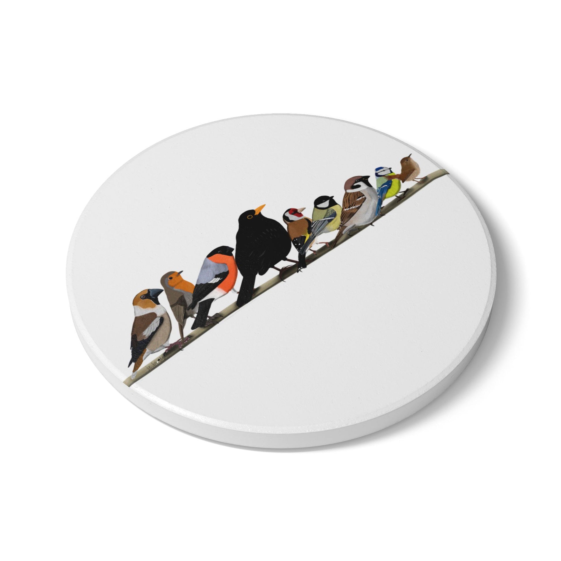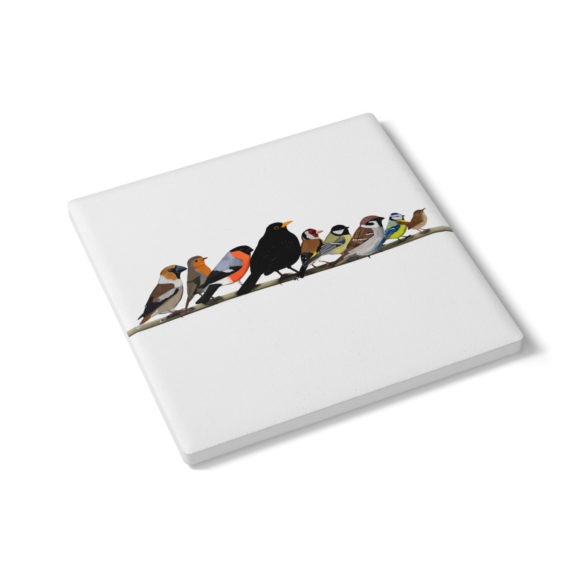 Vögel auf einem Ast Keramik-Untersetzer Vogelmotiv Weiß Amsel Rotkehlchen Blaumeise Zaunkönig