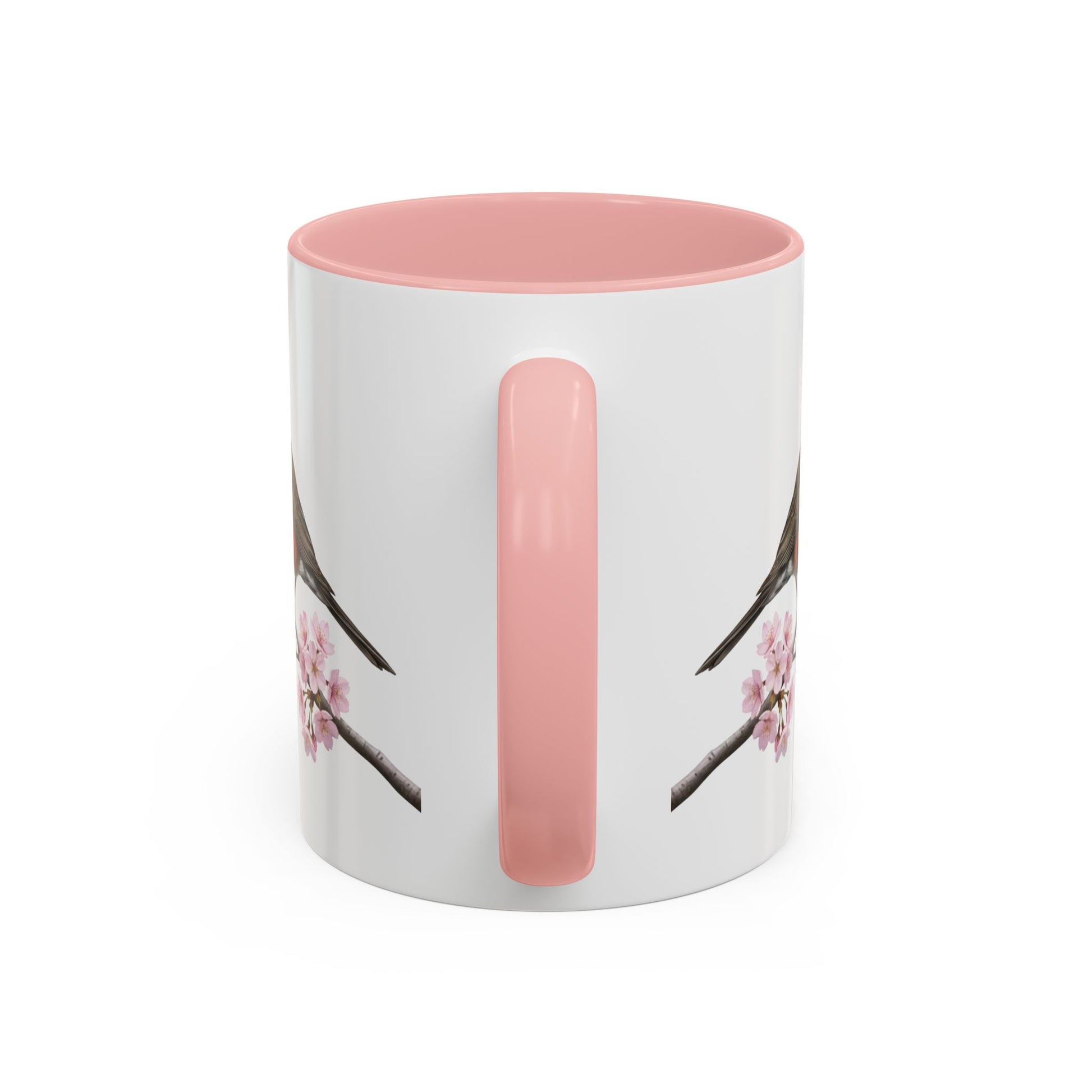 Wanderdrossel Tasse mit Kirschblüten | Rosa Keramiktasse für Vogelfreunde