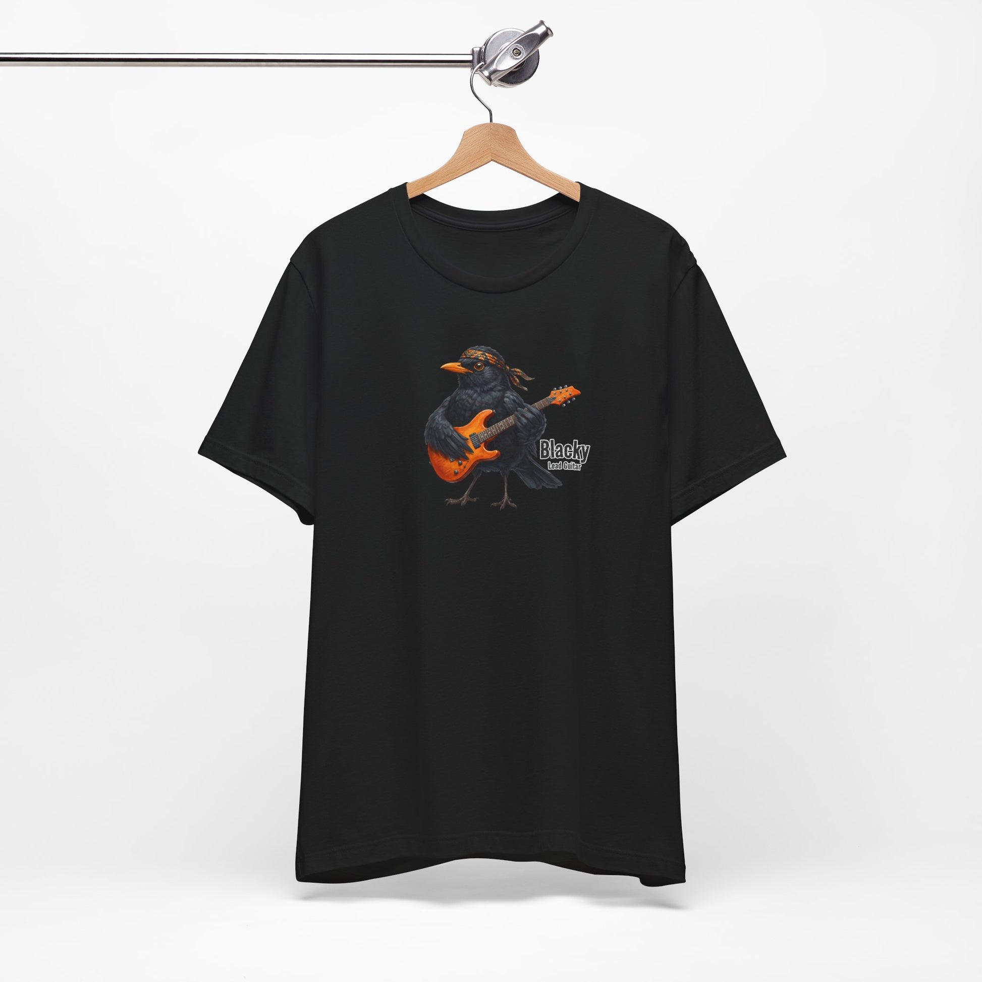 Melodien für die Dämmerung. Während die anderen Krach machen, liefert Blacky die Kunst. Als Lead-Gitarrist der Backyard Birds ist er bekannt für seine komplexen Solos, die er am liebsten auf dem höchsten Schornstein der Nachbarschaft spielt. Er ist der "Man in Black" der Vogelwelt – cool, mysteriös und immer on point. Das perfekte Shirt für Ästheten, Nachtschwärmer und Luftgitarren-Helden.