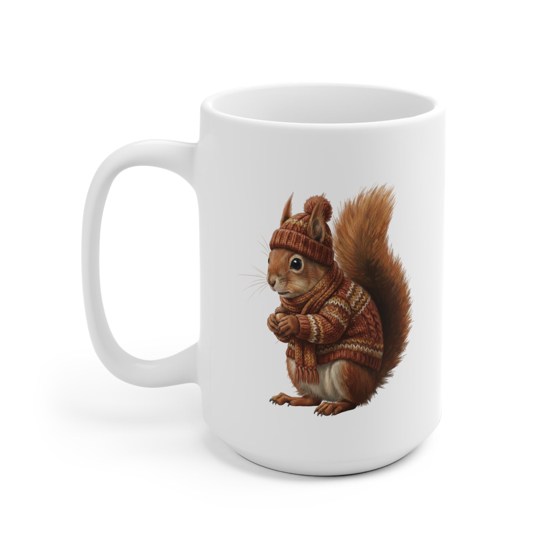 Eichhörnchen mit Strickpullover Weihnachtliche Tasse mit Tiermotiv – Ideal für Kakao & Kaffee