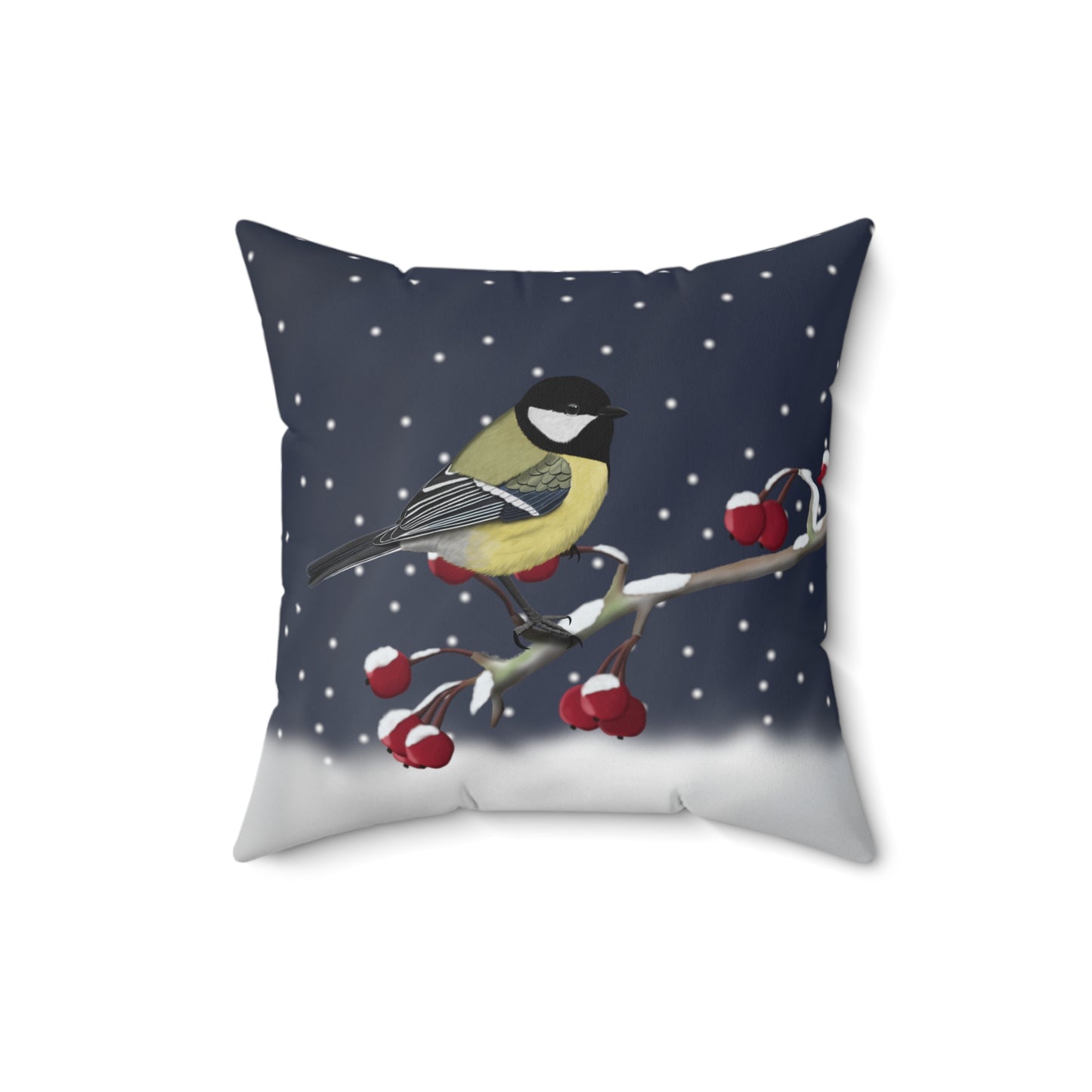 Kohlmeise auf einem Ast im Schnee Vogelmotiv Kissen