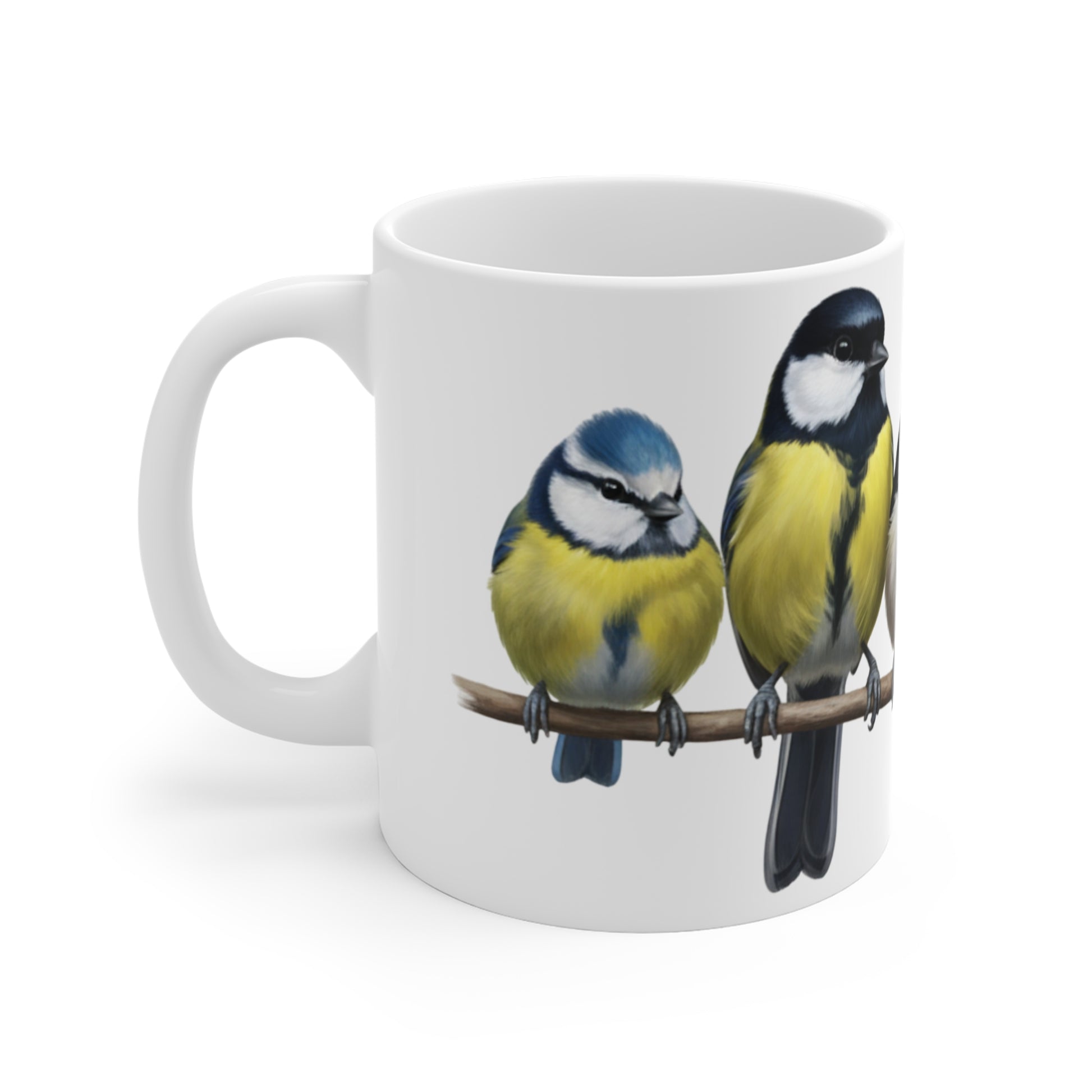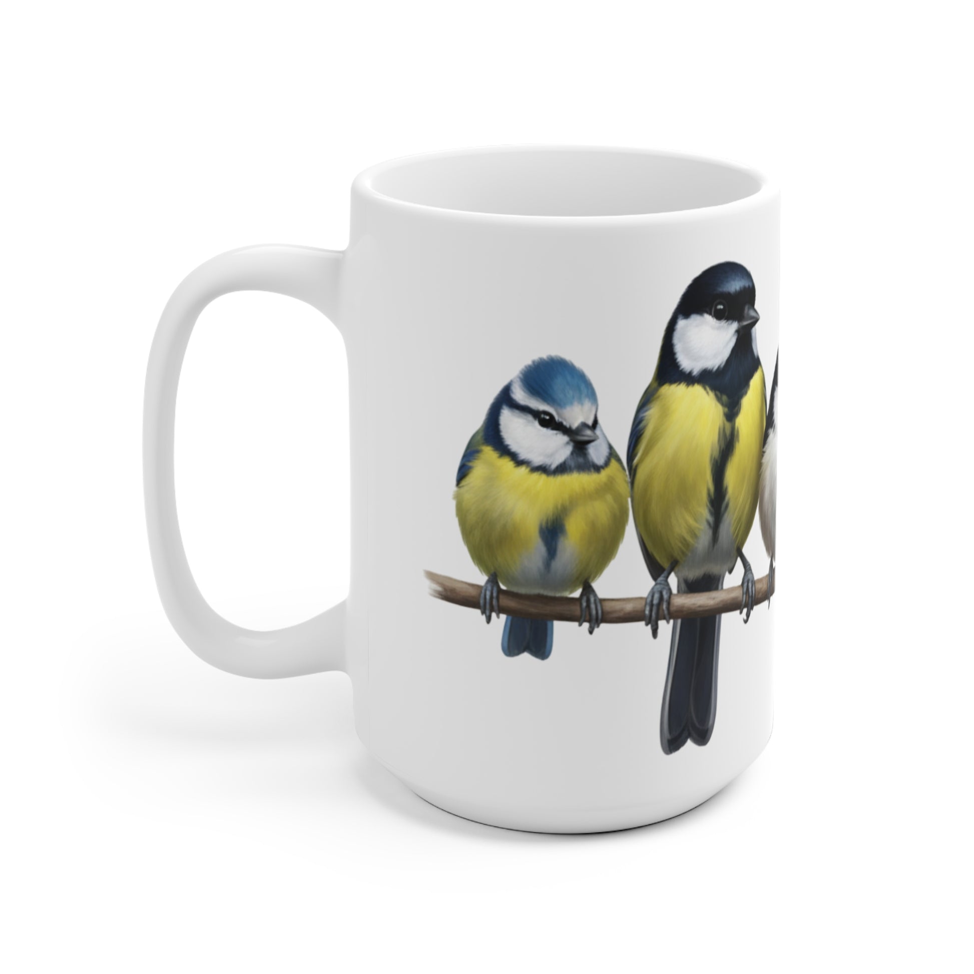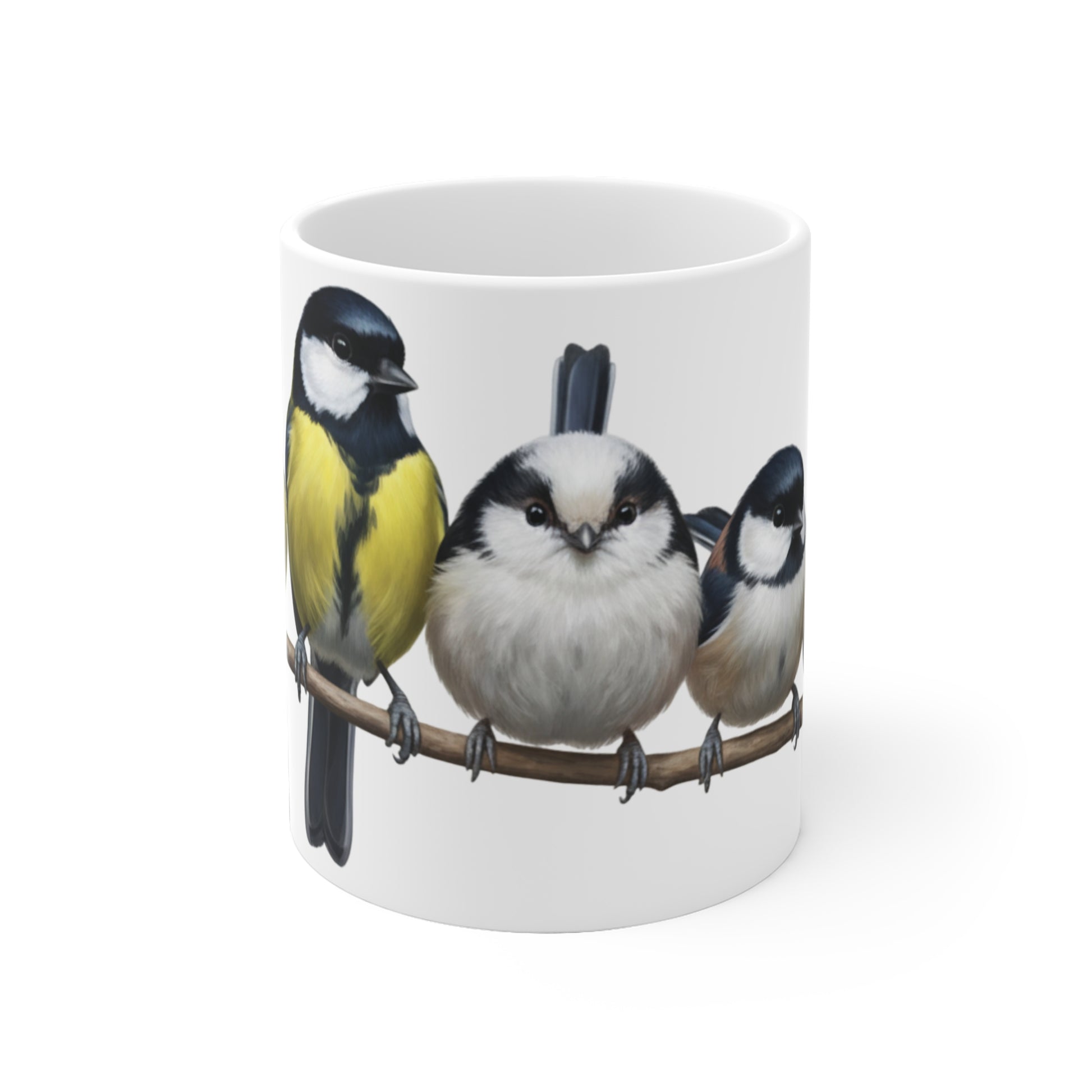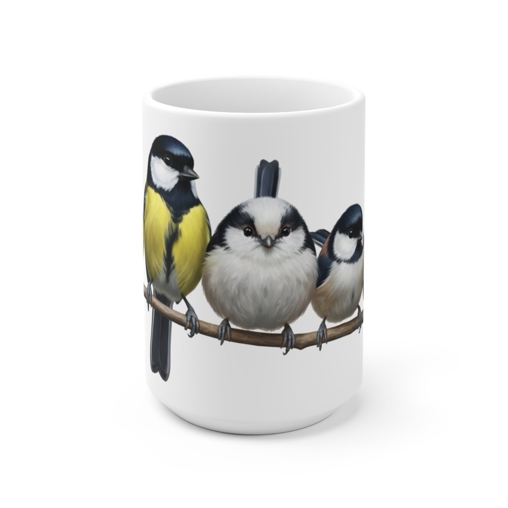 Unsere Meisen auf einem Ast Vogelmotiv Tasse ist perfekt für Tee und heiße Schokolade. Die klassische Keramik Tasse ist in den Größen 11 oz. (0,33l) und 15 oz. (0,44l) erhältlich und eignet sich hervorragend als Geschenk für alle Vogelfreunde, Vogelbeobachter und Tierfreunde.