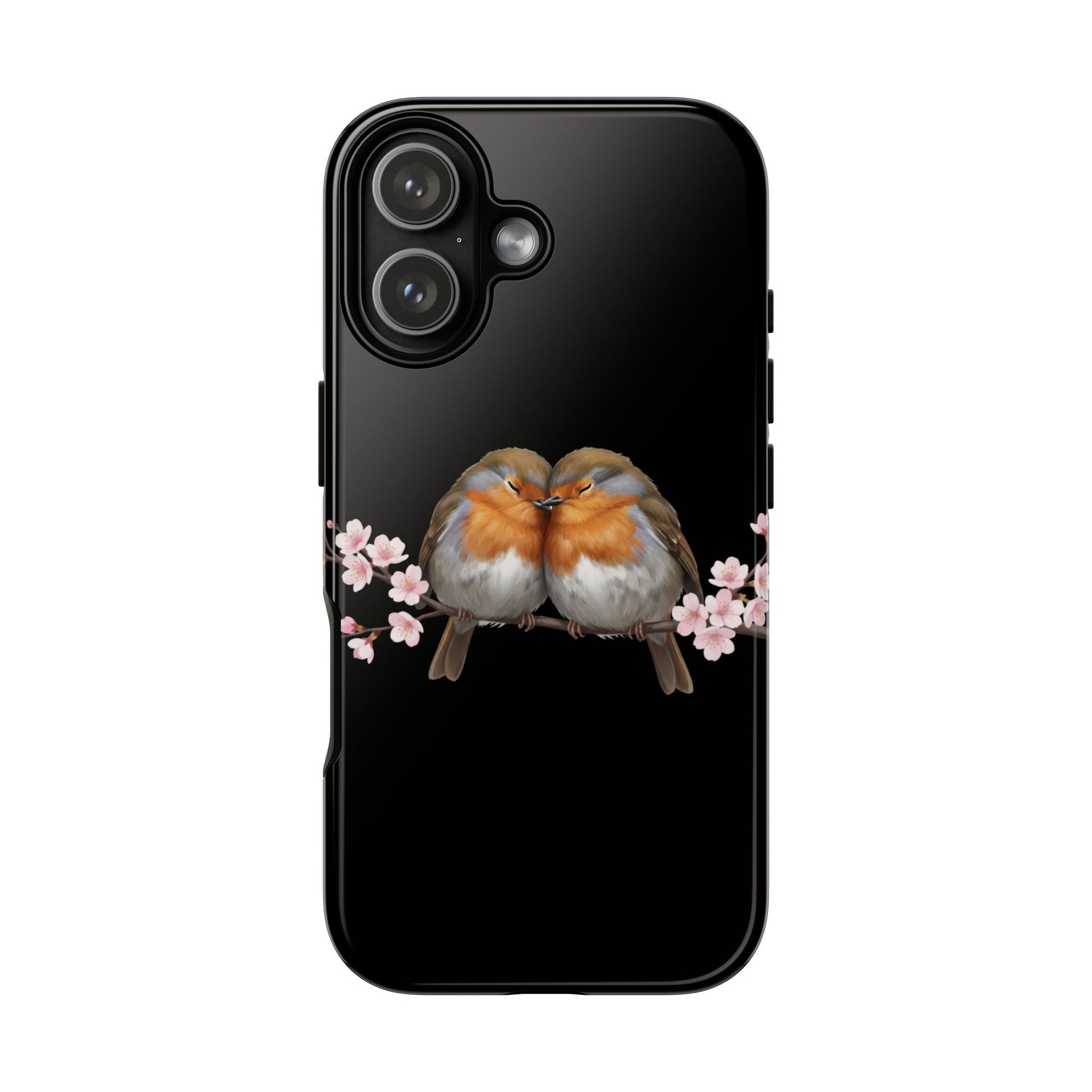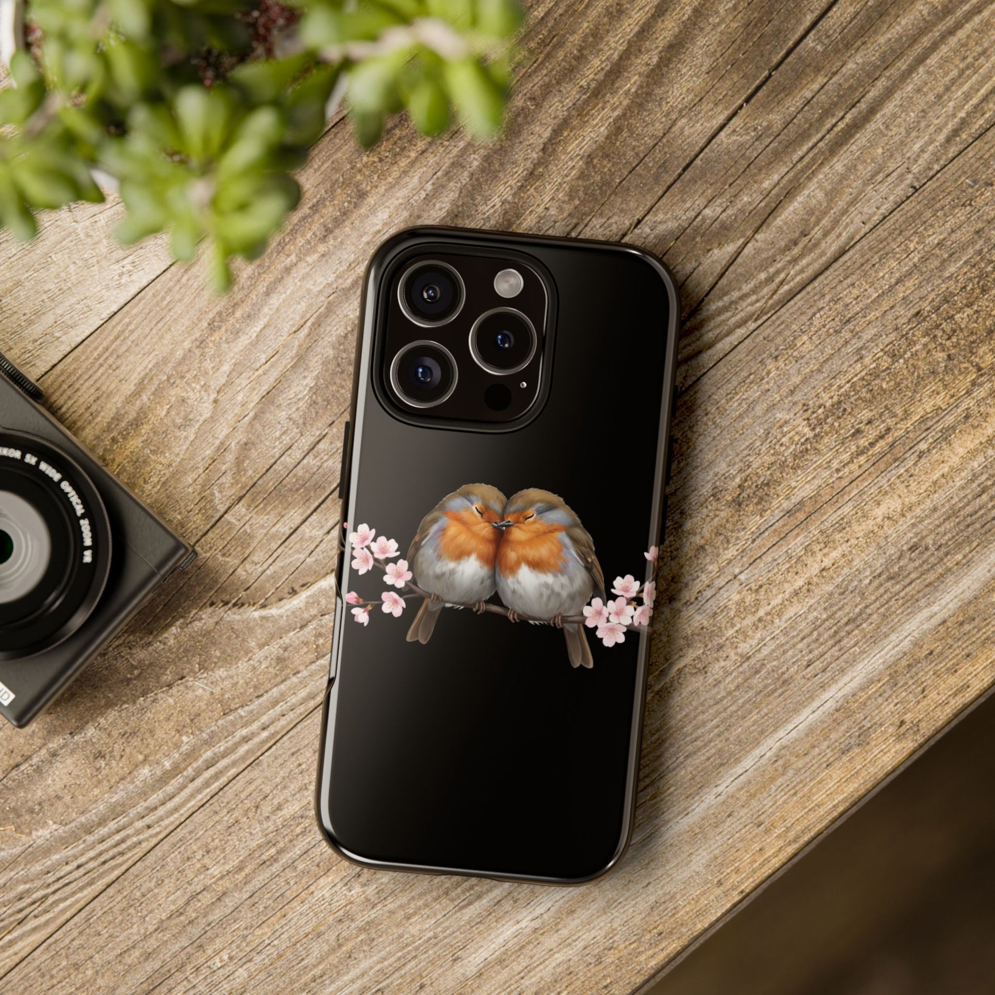 Rotkehlchen mit Kirschblüten Premium Handyhülle – Doppelt Geschützt & Rundum Bedruckt Schwarz