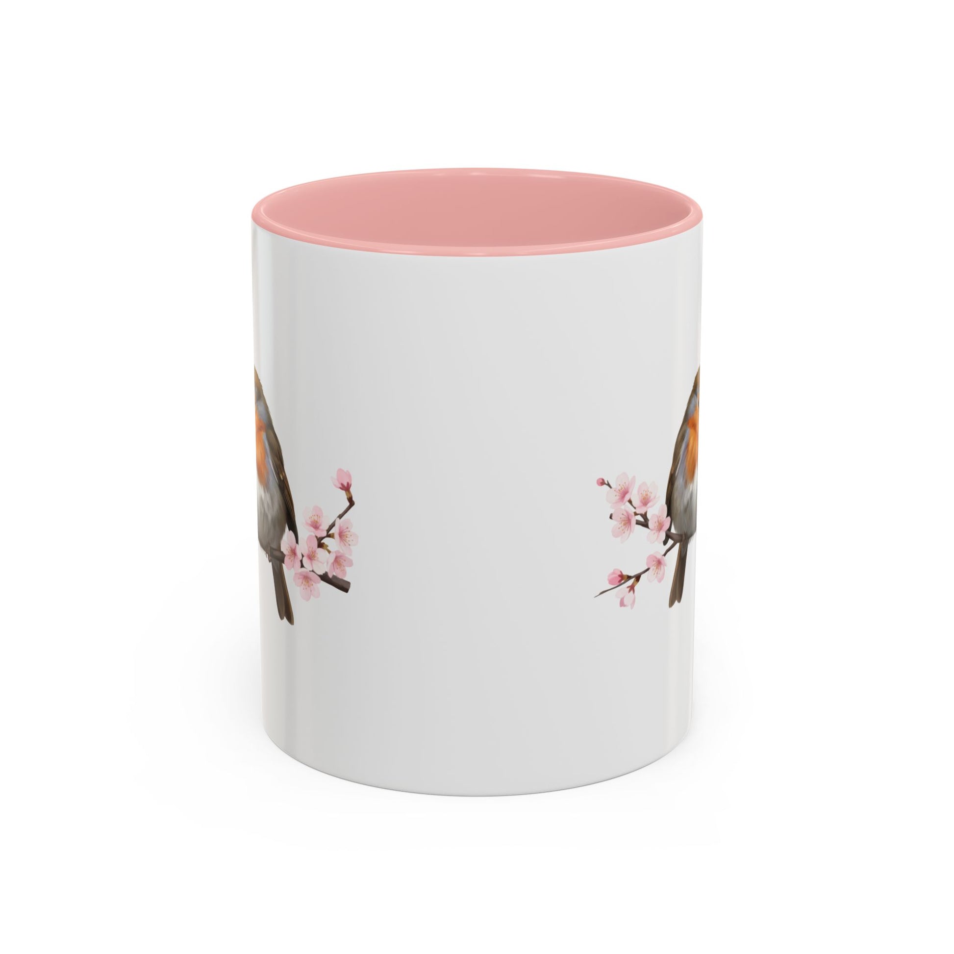 Rotkehlchen Pärchen mit Kirschblüten Tasse - Romantisches Geschenk für Vogelfreunde