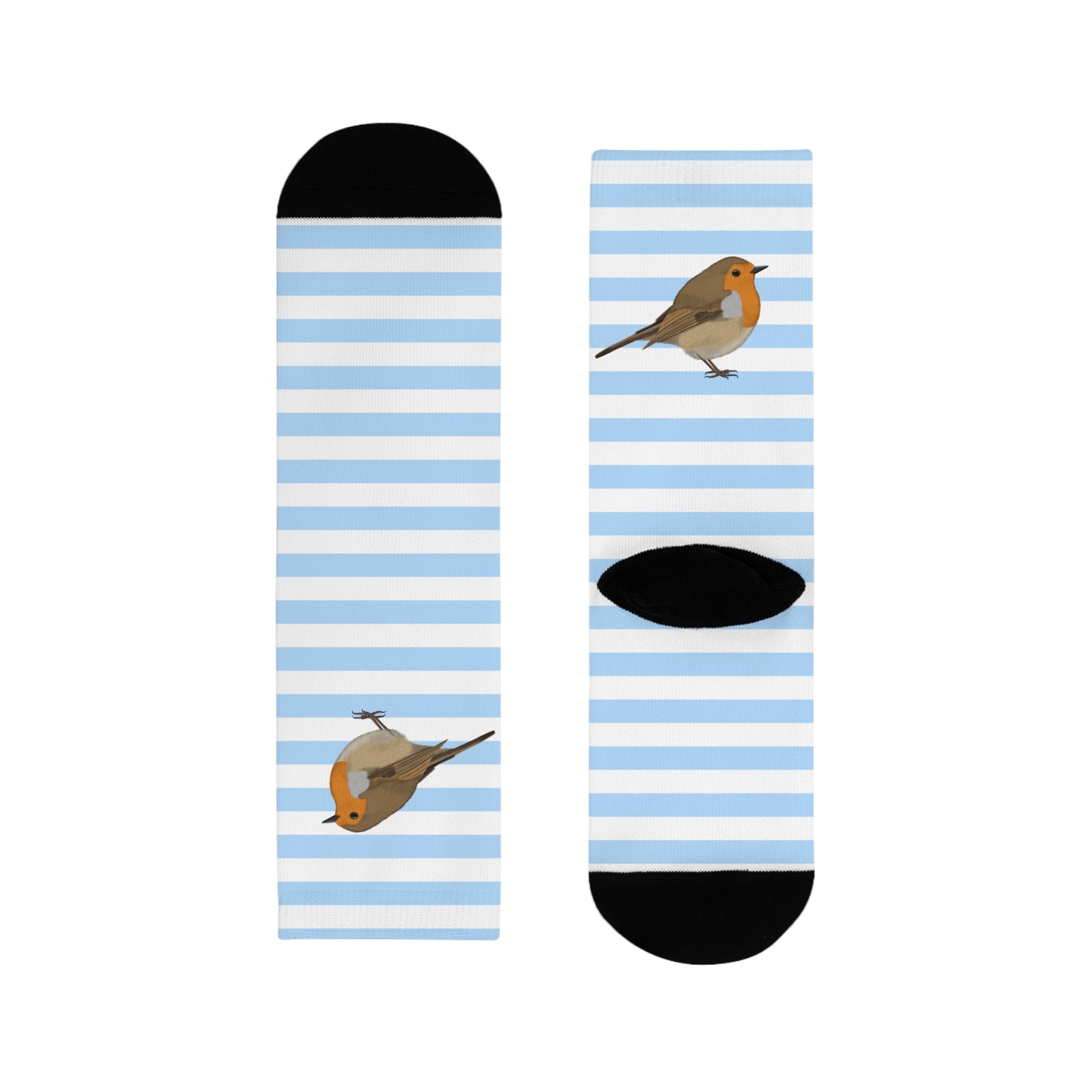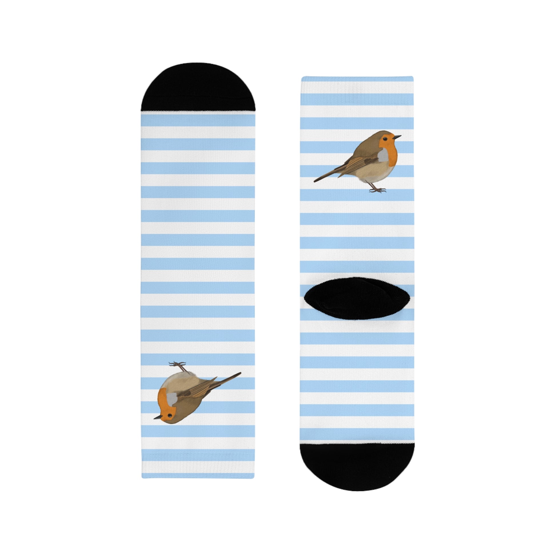 Rotkehlchen Vogel Socken mit Blau Weißen Streifen für Vogelfreunde & Vogelbeobachter