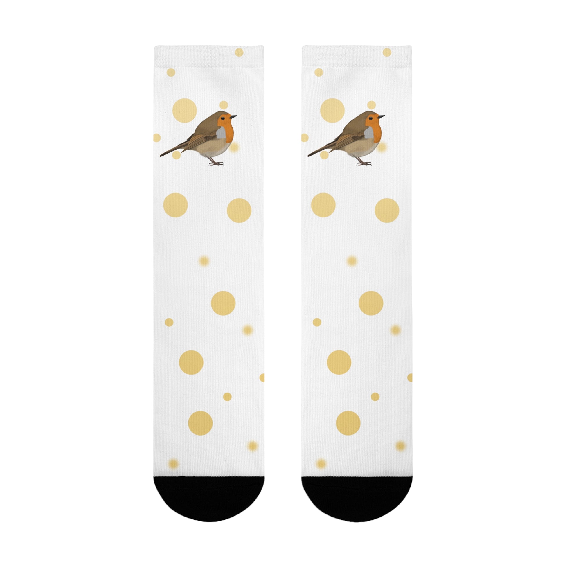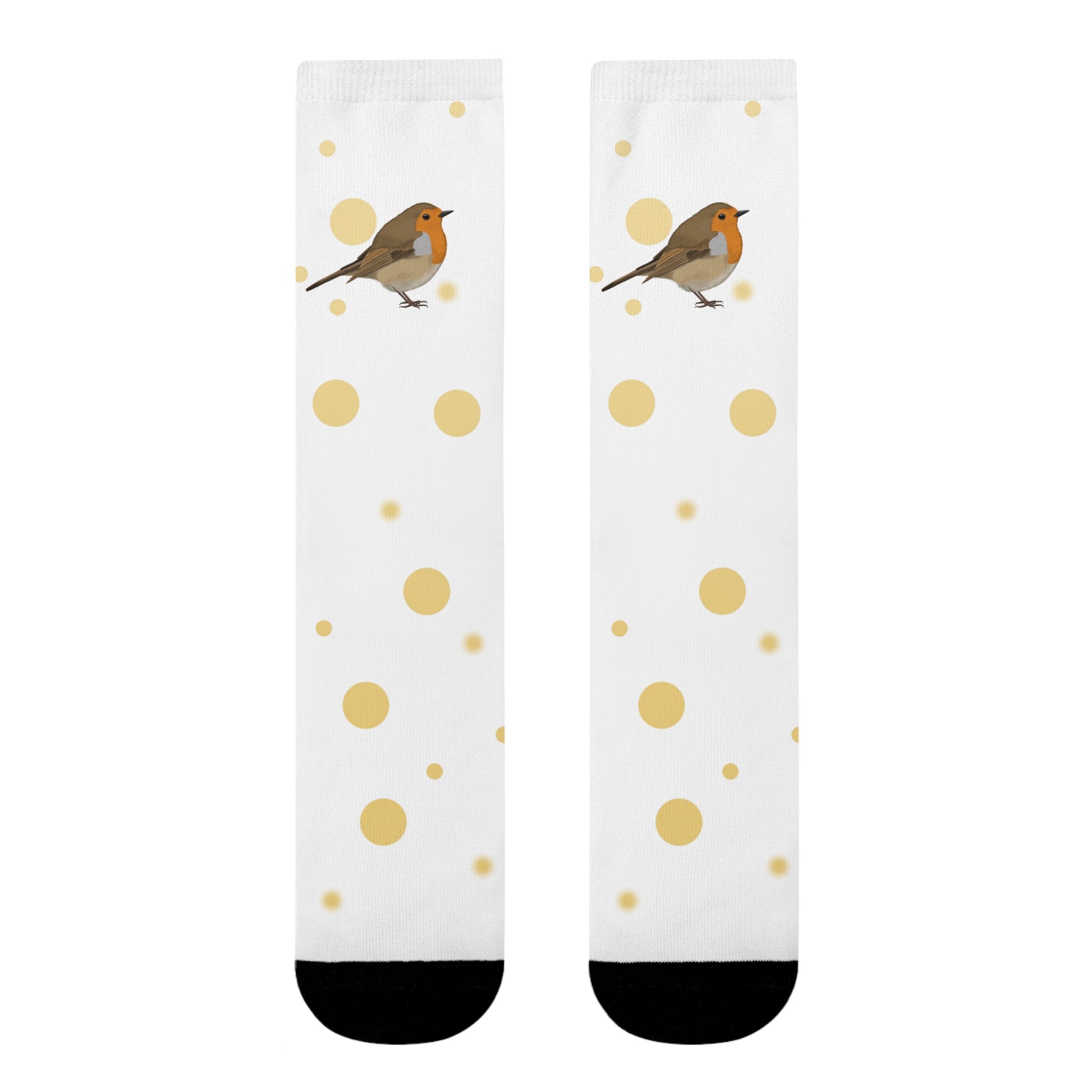 Rotkehlchen Vogel Socken mit Goldenen Punkten für Vogelfreunde & Vogelbeobachter Weiß