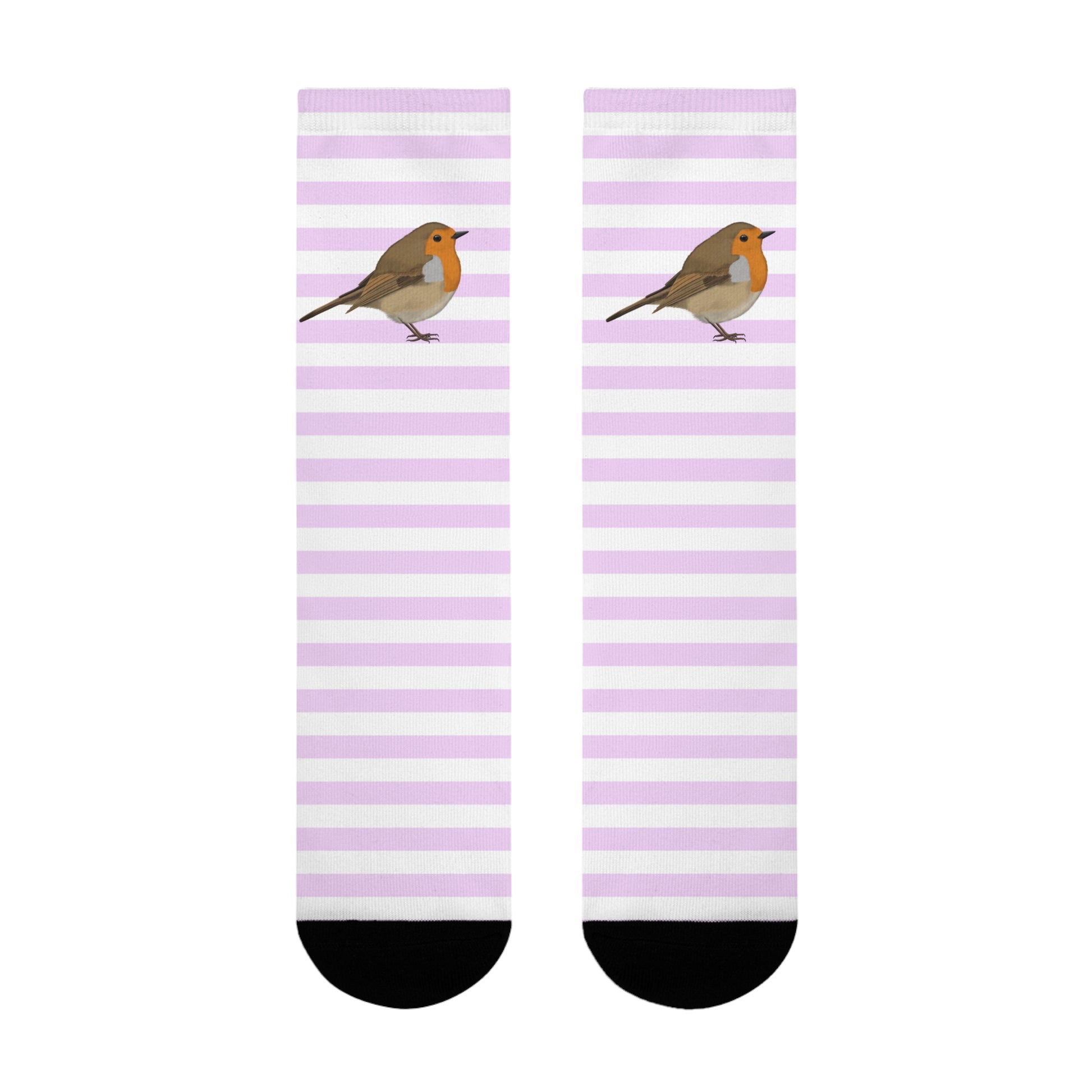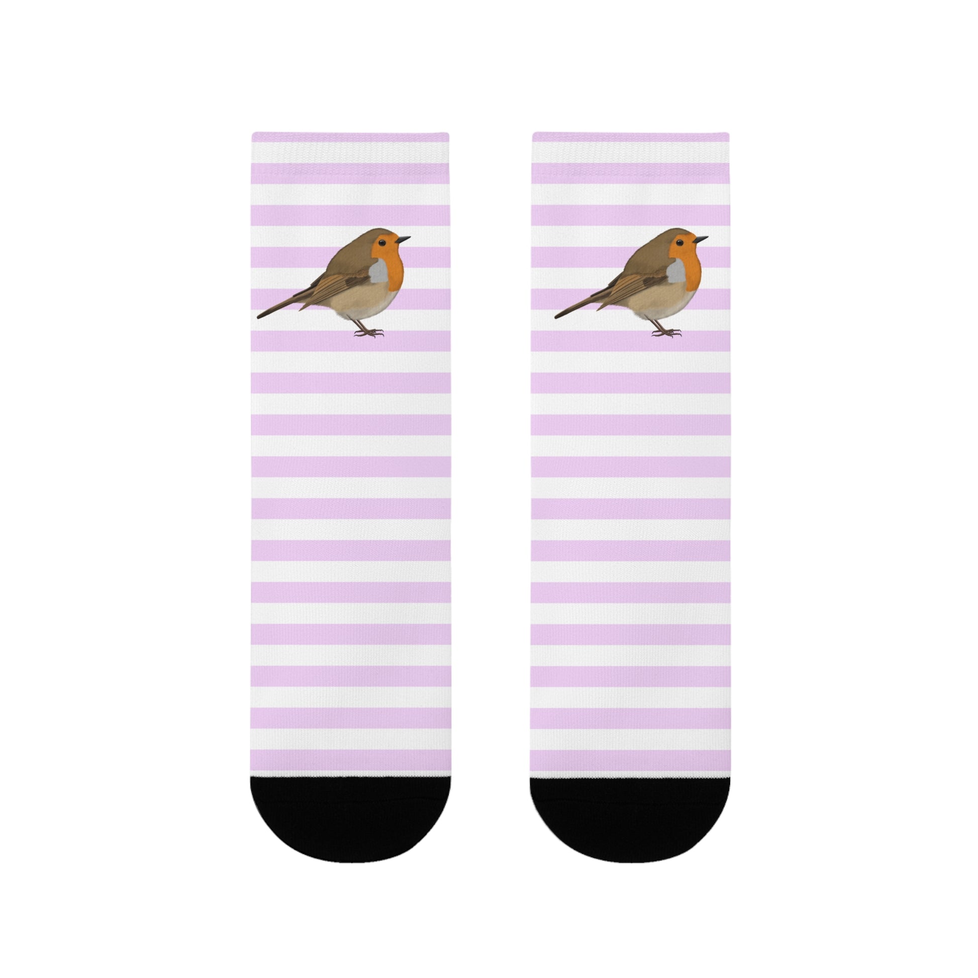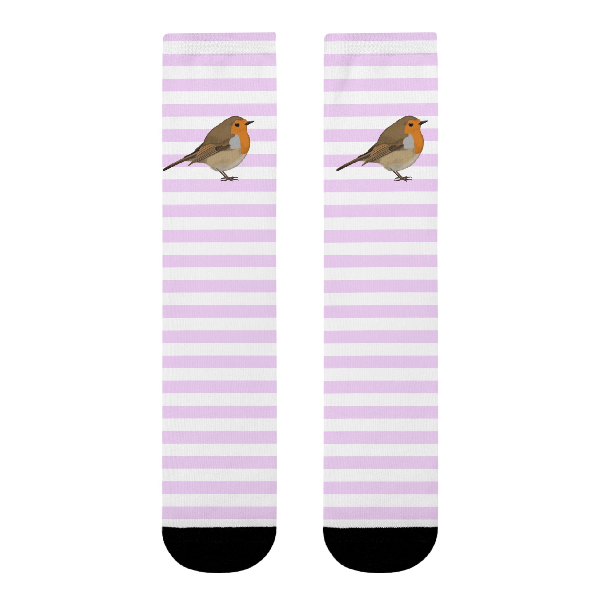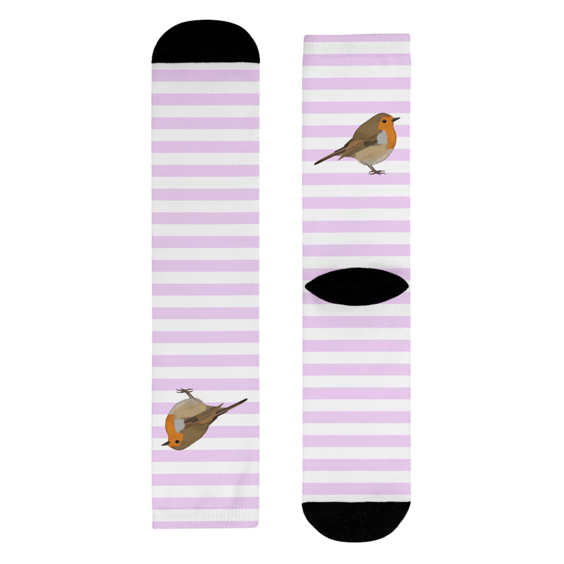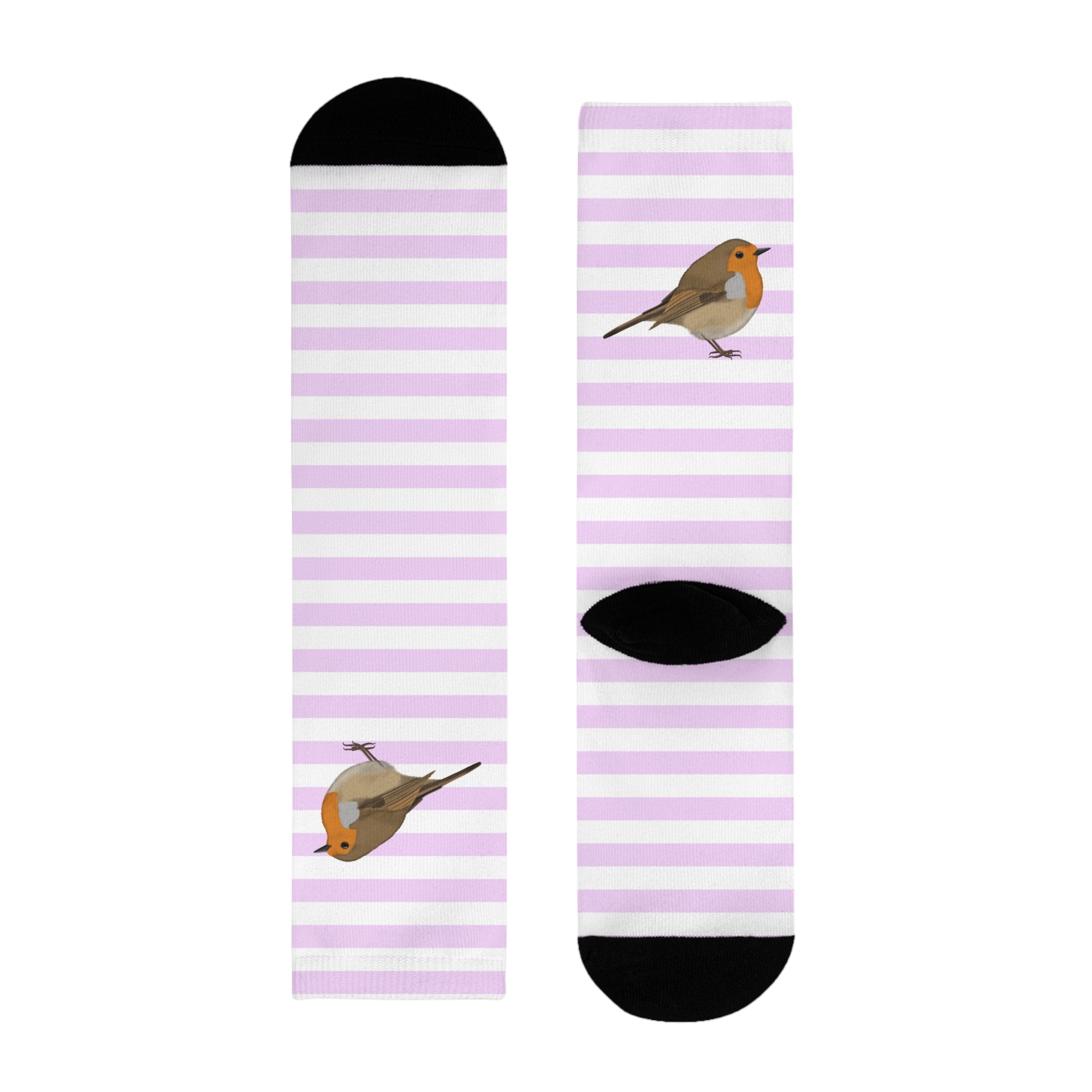 Rotkehlchen Vogel Socken mit Rosa Weißen Streifen für Vogelfreunde & Vogelbeobachter