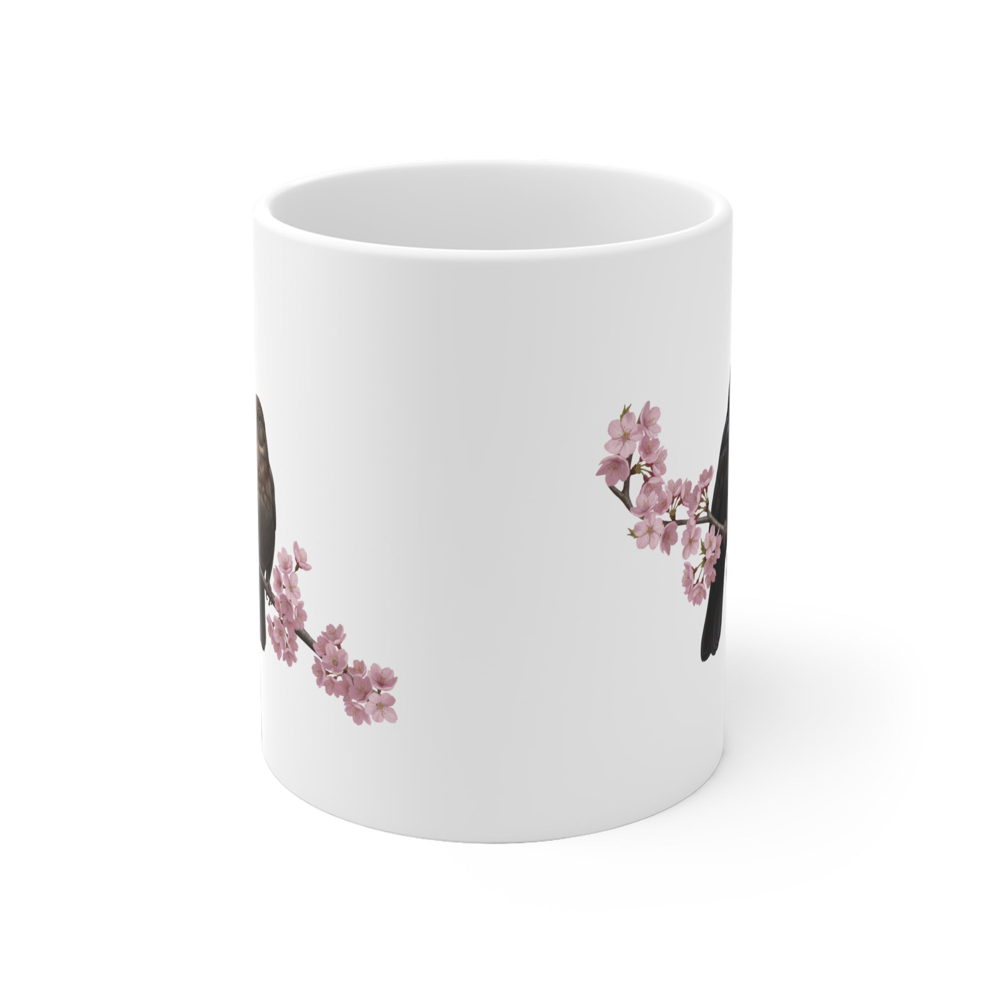 Genieße deinen Kaffee inmitten eines Blütenmeeres. Diese wunderschöne Keramiktasse zeigt ein realistisch gezeichnetes Amsel-Pärchen, umgeben von zarten, japanischen Kirschblüten. Das Motiv wirkt auf der weißen Tasse wie handgemalt und bringt sofortige Frühlingsstimmung auf den Frühstückstisch. Perfekt als kleine Aufmerksamkeit zum Valentinstag, Muttertag oder einfach als neue Lieblingstasse für Naturliebhaber. Die klassische Tasse ist in den Größen 11 oz. (0,33l) und 15 oz. (0,44l) erhältlich.