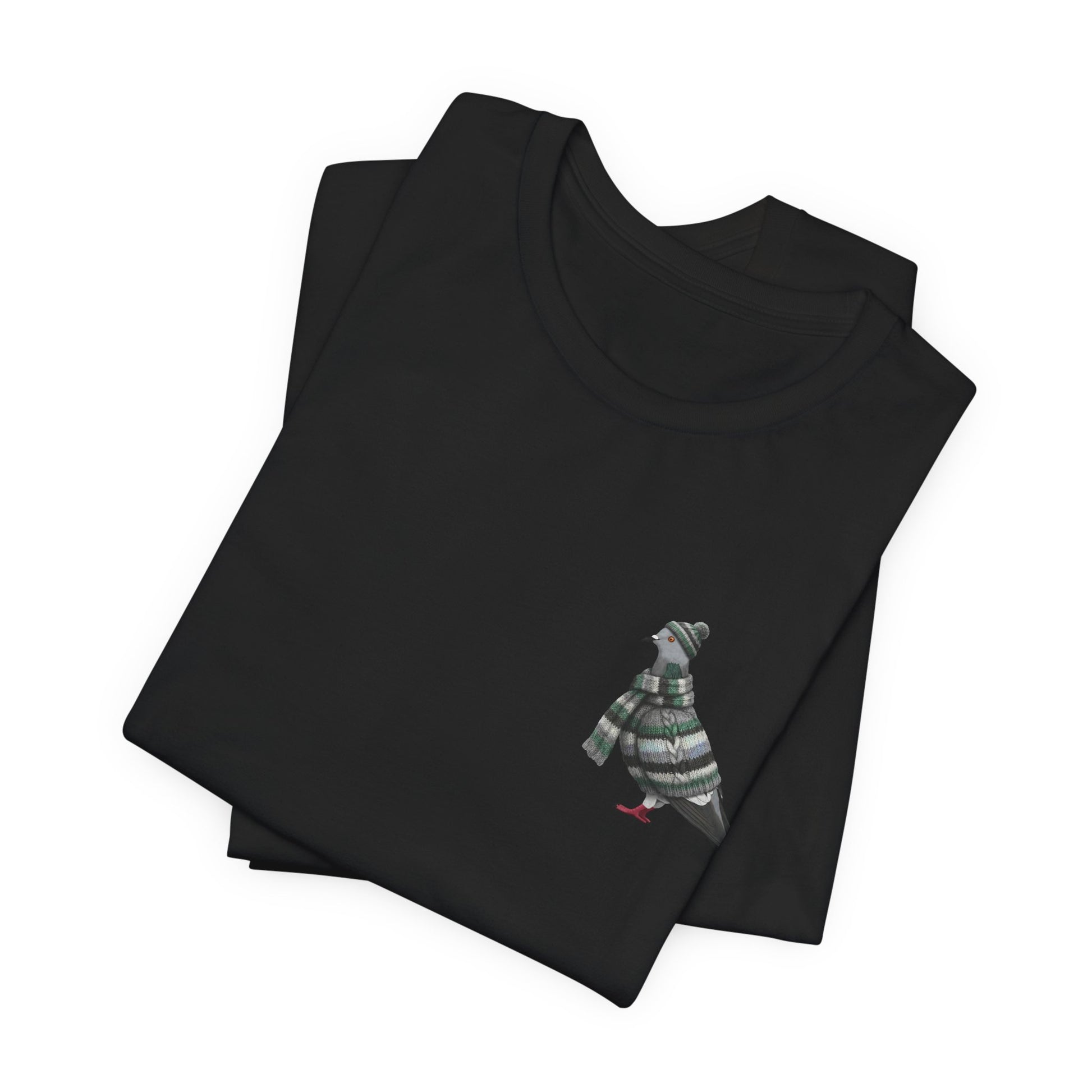 Taube in Strick T-Shirt – Weiches Premium Shirt mit Winterlichem Vogelmotiv für Vogelbeobachter