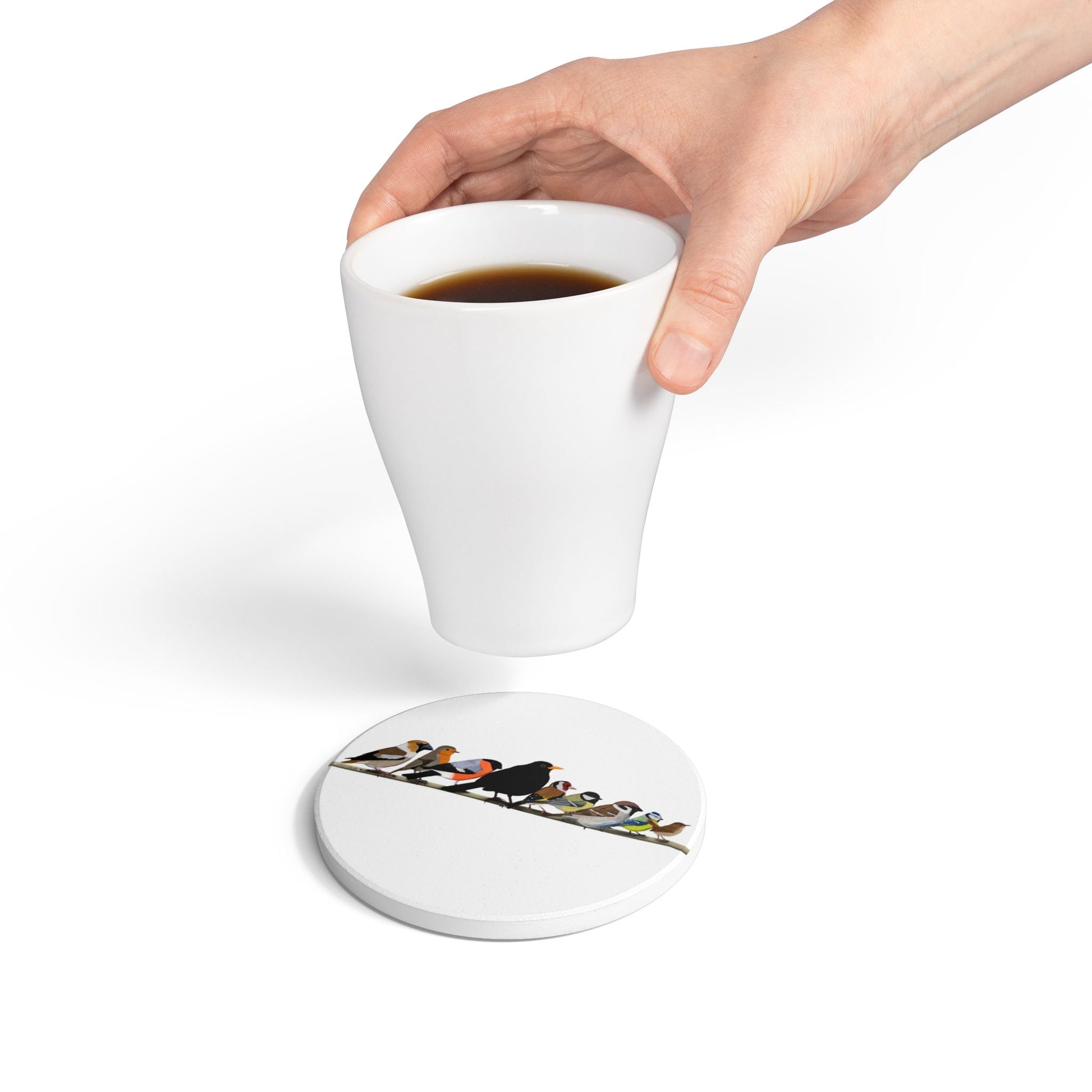 Vögel auf einem Ast Keramik-Untersetzer Vogelmotiv Weiß Amsel Rotkehlchen Blaumeise Zaunkönig